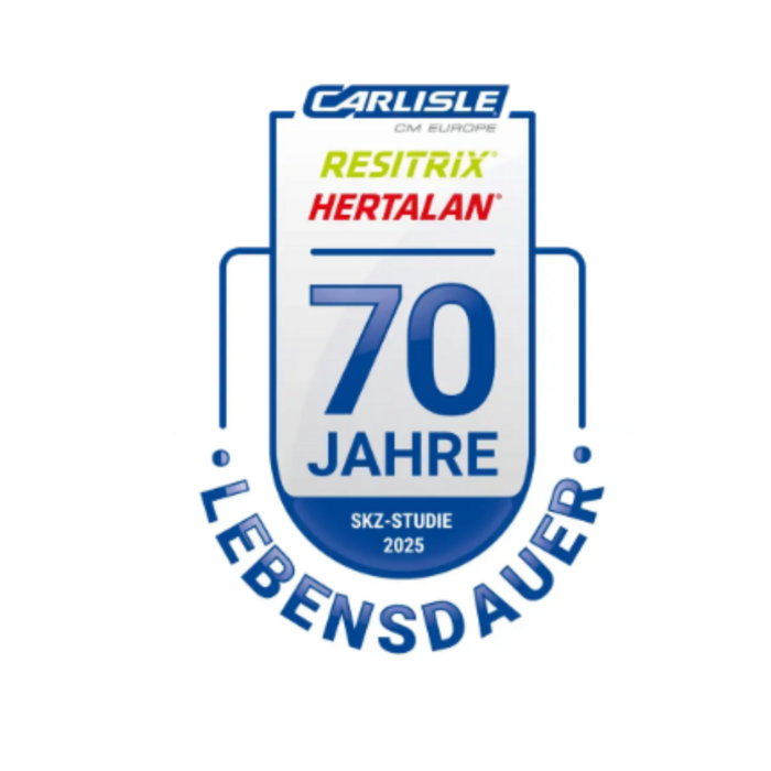Das Süddeutsche Kunststoff-Zentrum (SKZ) bescheinigt RESITRIX® und HERTALAN® EPDM eine Lebensdauer von über 70 Jahren und behalten dabei eine hohe Zugfestigkeit.